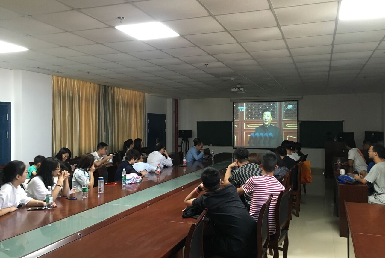 党委组织党委委员、各党支部书记、学生党员及入党积极分子在文科大楼1104会议室集中观看了中华人民共和国成立70周年庆祝大会及阅兵式。