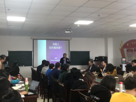学生进行了题为“马院人如何做科研?”专题讲座,华中科技大学讲师、武汉大学博士沈孝鹏以及学院部分教师代表聆听了此次讲座。