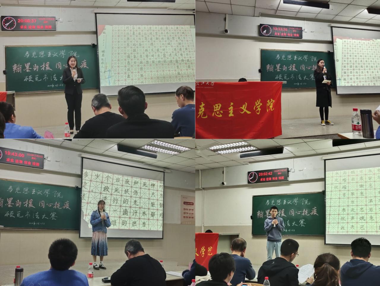 吴智勇书记对本次硬笔书法大赛做总结。他表示,本次书法比赛体现了同学们对书法艺术的执着和热爱,为同学们展现自我、发现自我、提升自我提供了舞台。他希望马院学子在学习过程中积极参与各类活动,取长补短,全面发展,努力成为“站起来能讲、坐下去能写、沉下去能干”的社会主义可靠接班人。