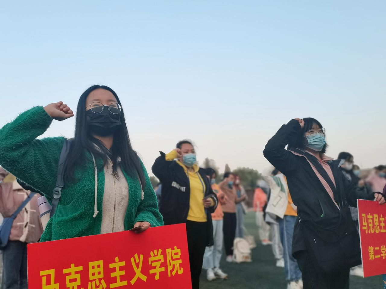 在东校区田径场隆重举行“青春做脊梁,战疫勇担当”主题升国旗仪式。学院党委书记吴智勇、院党委副书记马小佼、学工办主任张云雾、辅导员李敏和学院全体在校学生参加了活动。