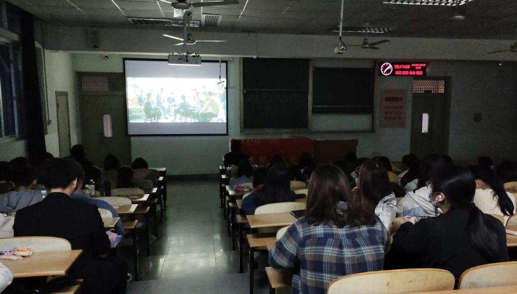 影片播放期间,同学们聚精会神,深刻体会并了解了肩负在大学生身上的责任感和使命感,活动现场气氛融洽且秩序井然。影片播放完毕后,进入学生分享环节,12002班宋松松、11902班申佳雪、12001班刘智慧、19002班罗蓉相继分享自己的观影感受。