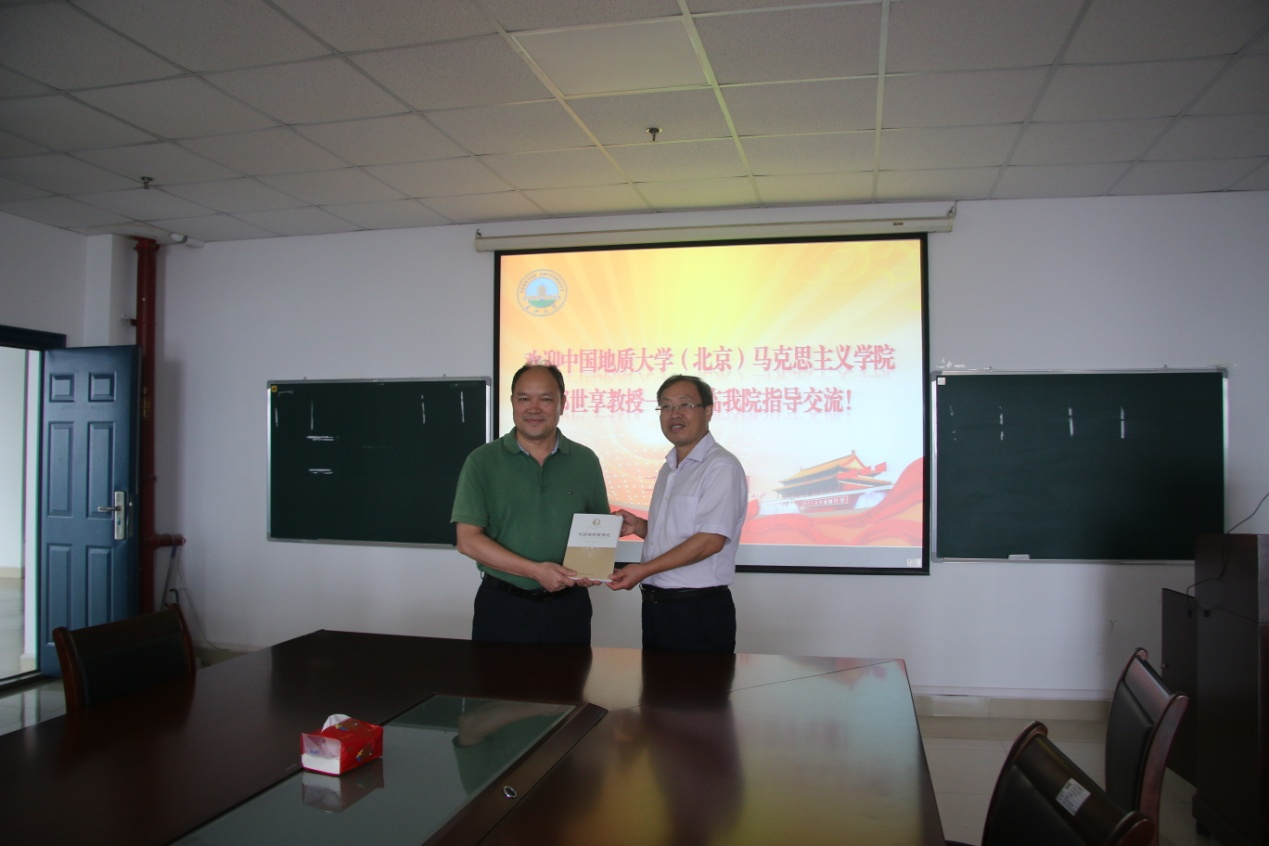 (通讯员 徐先荣)6月28日,中国地质大学(北京)91暗网 邹世享教授一行来91暗网 交流。姜学勤院长、黄晓云副院长、涂江波副院长等领导班子成员在文科楼1104与来访客人进行了深入的交流。双方各自介绍了学院发展情况,并就下一步在学科建设、研究生培养等方面的合作达成了意向。