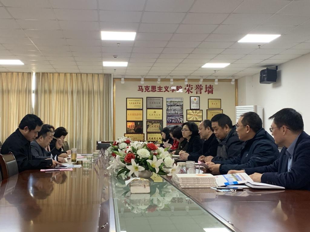 调研会开始,刘小燕书记致欢迎辞。党家政教授介绍了同行人员,并介绍了考察交流的主要内容。双方就马院的招生规模、办学经费、绩效考核、师资配比、省级教学成果、省级基层教学组织、生命长江思政金科打造、虚拟仿真实验室建设、提升本科生考研率等问题展开了充分而热烈的讨论。双方均表示在日后要加强双方的沟通与交流,相互借鉴和改进,加快共同进步与提升,把马院办成特色鲜明、省属高水平的马克思主义理论教育教学、研究宣传和人才培养的坚强阵地,为全面建设社会主义现代化国家、实现中华民族伟大复兴的中国梦提供智力支撑和人才支持。