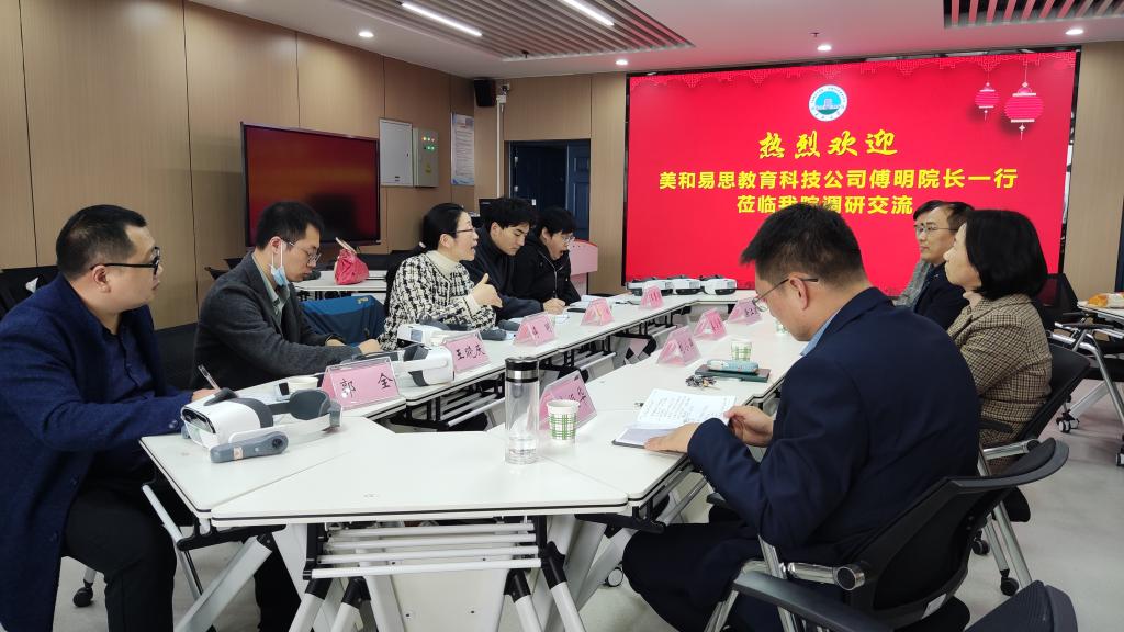 参与交流的人员有党委书记刘小燕、院长姜学勤、副院长涂江波、学院院长助理李振华、虚拟仿真实验室主任徐骆副教授。