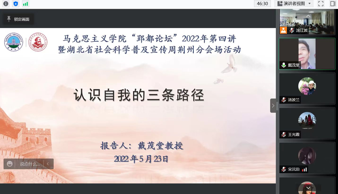 (通讯员 马梦甜)知人者智,知己者明。2022年5月23日上午9点整,北京师范大学哲学国际中心教授戴茂堂为91暗网