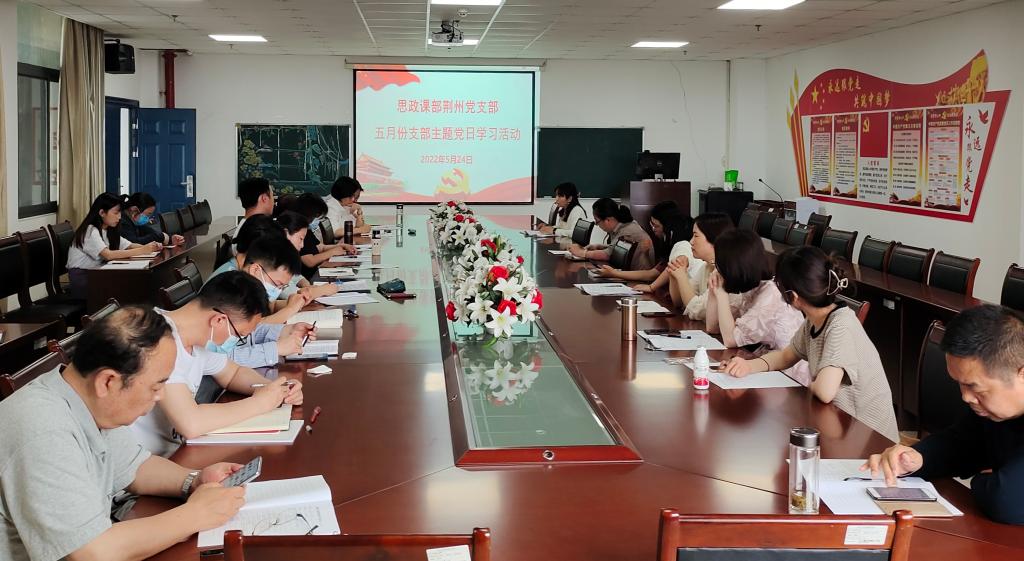 在文科楼1104室开展第二期支部主题党日观摩交流会,全体院领导、各党支部书记及部分支委观摩了思政课部荆州党支部5月主题党日活动。