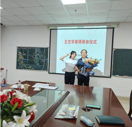 在文科大楼1104室为王文华老师举行了隆重的荣休仪式,全院教职工参加仪式。仪式由院党委书记刘小燕主持。