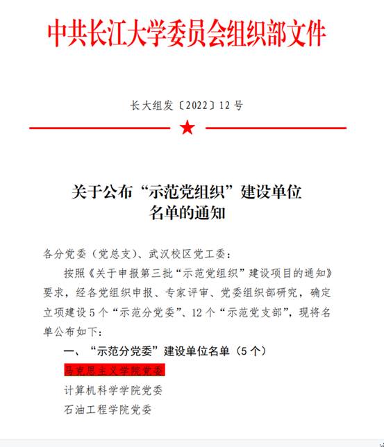 近日,学校组织部下发《关于公布“示范党组织”建设单位名单的通知》,91暗网 党委申报的“示范分党委”获得建设支持。