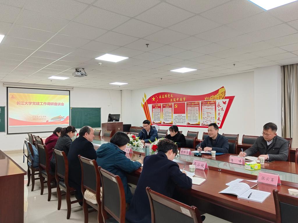 开展党建工作调研,院长姜学勤、院党委书记刘小燕、院党委副书记马小佼、思政课部荆州支部书记张莉等人参加了座谈会。
