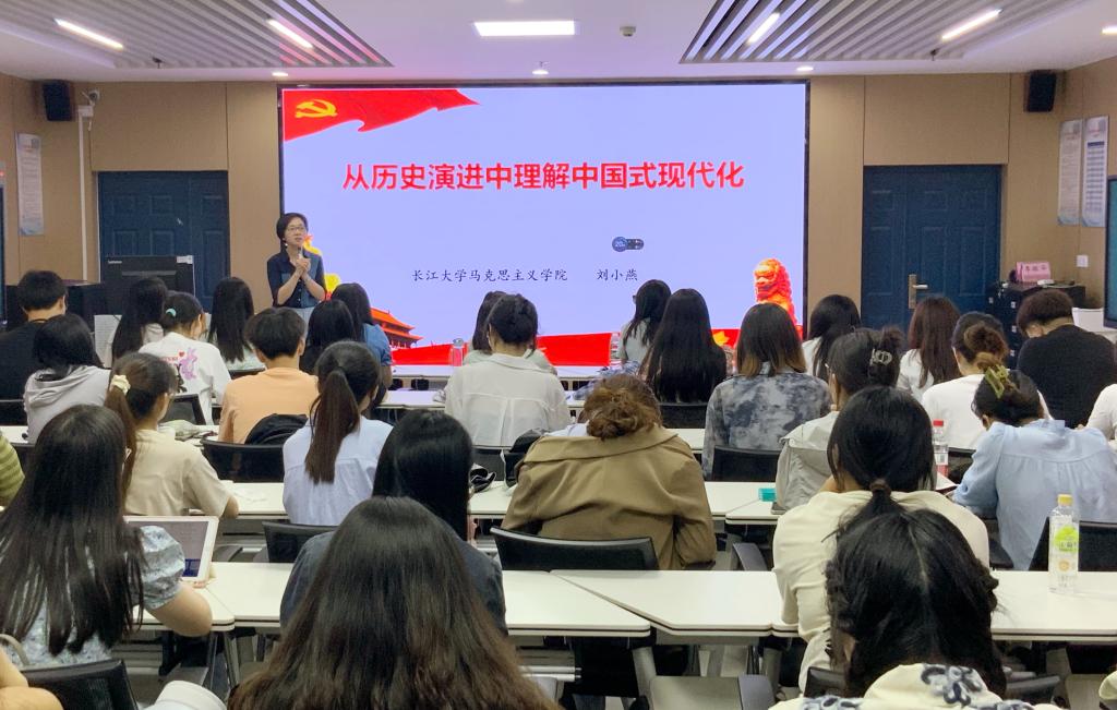 党委书记刘小燕在文科楼1008室讲授专题党课,全院入党积极分子、发展对象、预备党员到会学习。