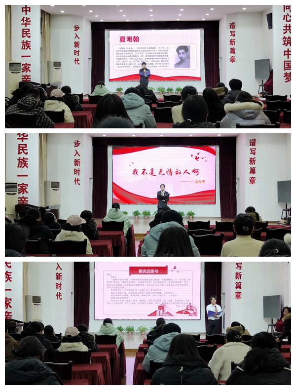“要群众做到的,党员自己首先要做到!”高思睿、于潇浚、蔡少卓三位同学,时而慷慨激昂,时而低回婉转,用生动的语言和真挚的情感,引领与会人员先后品读夏明翰、黄海明、秦光远三位革命先辈的书信,声情并茂,令人动容。