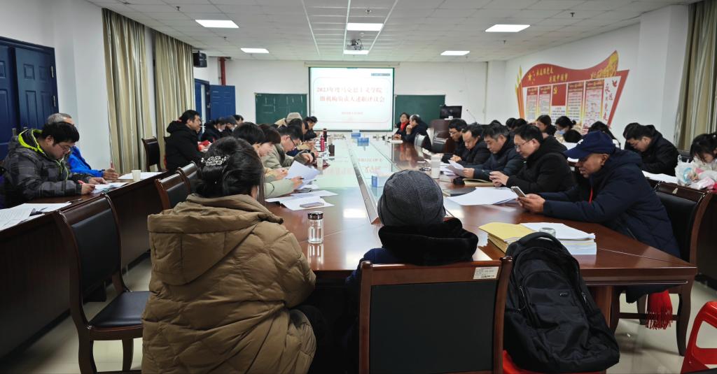在文科楼A区1104会议室举行二级机构负责人述职评议会暨教代会换届大会,会议由院党委书记刘小燕主持,全院教职工以线上线下相结合的方式参会。