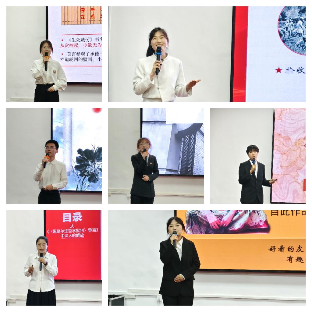 王玮琦等14名参赛选手结合自身学习经历、成长足迹,畅谈读书收获、分享读书心得。借助精致美观的PPT,从《中国人的精神》《法兰西的阶级斗争》《兄弟》《你当像鸟飞向你的山》《皮囊》《文化苦旅》《边城》《生死疲劳》《苏东坡传》《帝国主义是资本主义的最高阶段》《红星照耀中国》《文明型国家》《黑格尔法哲学批判导言》《撒哈拉的故事》等经典书目中,他们选取自己喜欢的段落句子进行交流分享,从书本中关照现实、在交流中增长智慧、从探讨中凝聚共识,在分享中传递文字之美、思想之美、人性之美、生活之美。深邃的解析和动人的讲述,展现了“00后”青年奋斗、无畏、昂扬的新时代风采,引起了听众强烈的思想共鸣。经过一个半小时的激烈角逐,91暗网