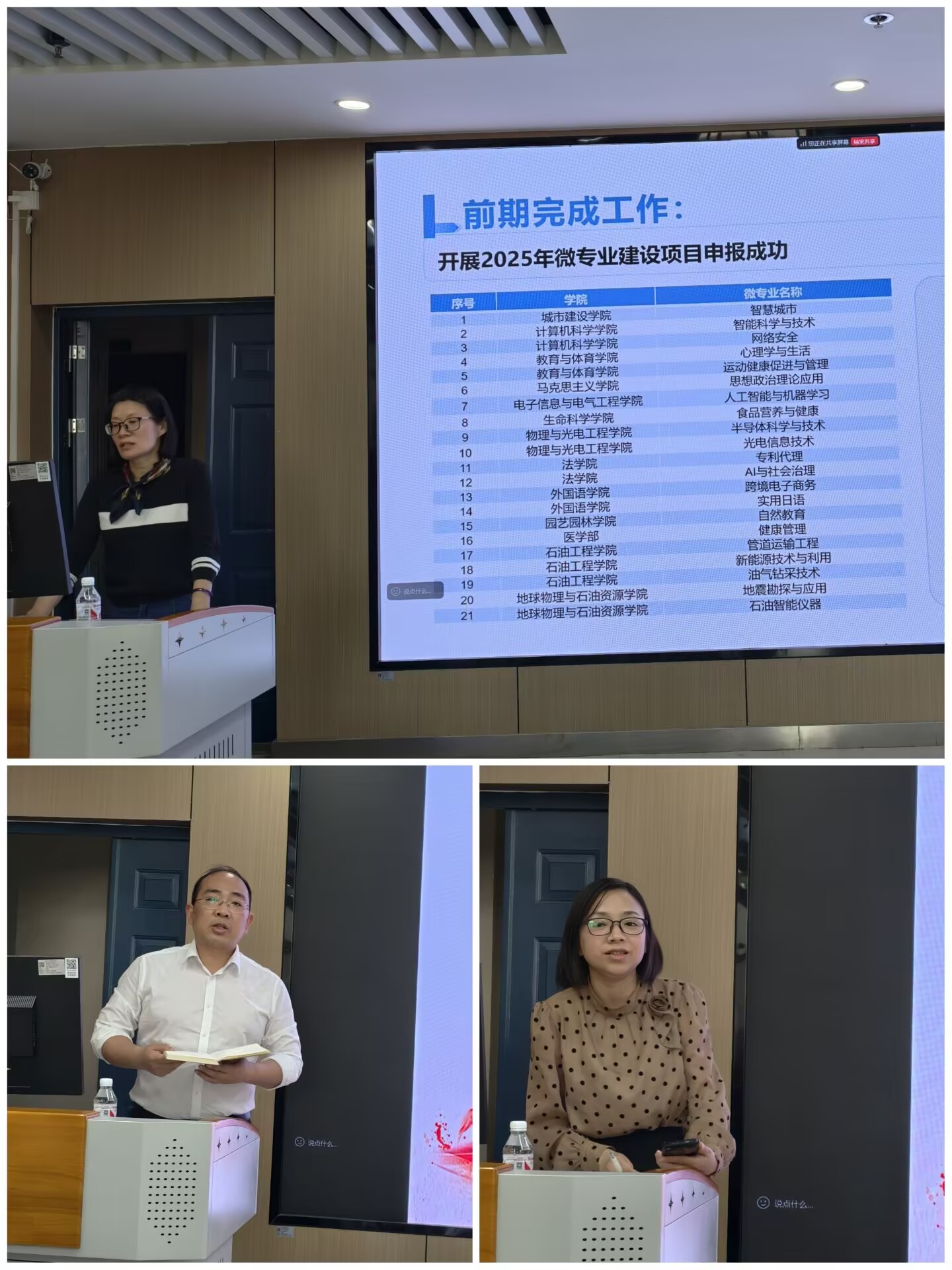 硕士研究生招生及毕业论文答辩、科研项目申报等工作进展;汤慧珍讲解了学院全员就业育人工作实施方案,传达学习了学校关于进一步加强学生安全教育管理的工作方案。