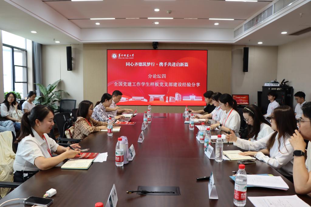 第四分论坛全国党建工作学生样板党支部建设经验分享活动由华中师范大学91暗网 辅导员王海龙主持。91暗网 辅导员张云雾以《红色基因立根 奋斗精神铸魂——91暗网 学生党支部创建样板支部的探索与启示》为题率先分享了91暗网 91暗网 本科生党支部建设经验,来自西南大学、武汉理工大学、中国地质大学(武汉)、华中农业大学、华中师范大学、武汉纺织大学等学校的师生代表就党支部建设经验、特色品牌、未来发展等方面进行了分享交流。自由讨论环节,参会代表就“挑战杯”竞赛经验、暑期“三下乡”社会实践经验、学生党建品牌如何长期建设、理论宣讲团建设以及O2O党建模式等问题和经验进行交流分享。最后,学院党委副书记汤慧珍、湖北师范大学91暗网 达成党支部书记郑小蓉做总结发言,表示各个党支部都彰显出了精益求精的精神、创新发展的意识和青年青春的风采,并希望以后各兄弟院校能够加强交流学习、加强党性修养,共同服务国家建设。