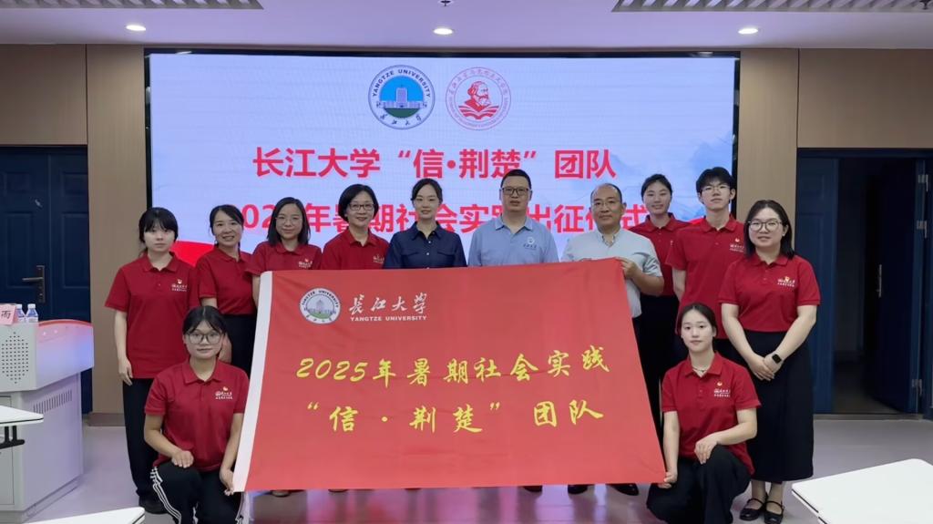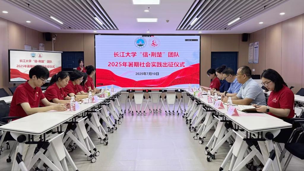 “信·荆楚”团队2025年暑期社会实践出征仪式在文科楼1008室举行。本科生院副院长孙细望、校团委副书记杜岳青以及“信·荆楚”团队全体成员参加活动。