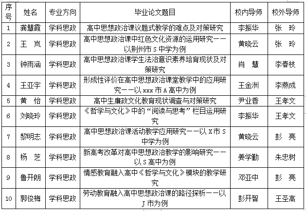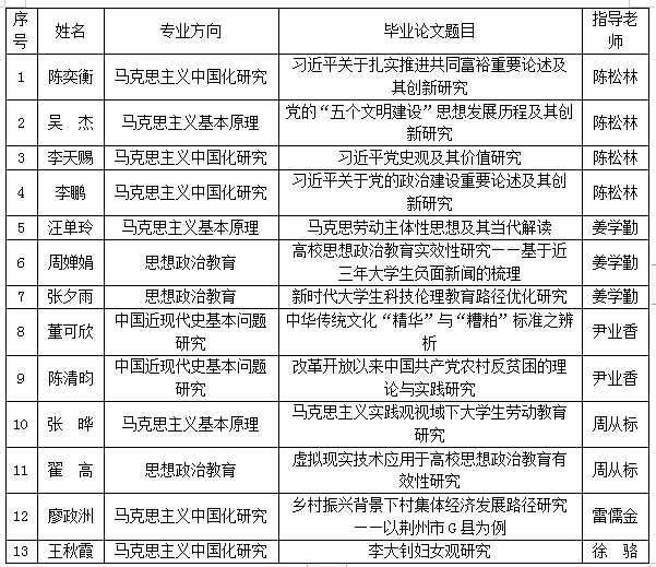 答辩研究生(序号即为答辩顺序,组长黎明志):