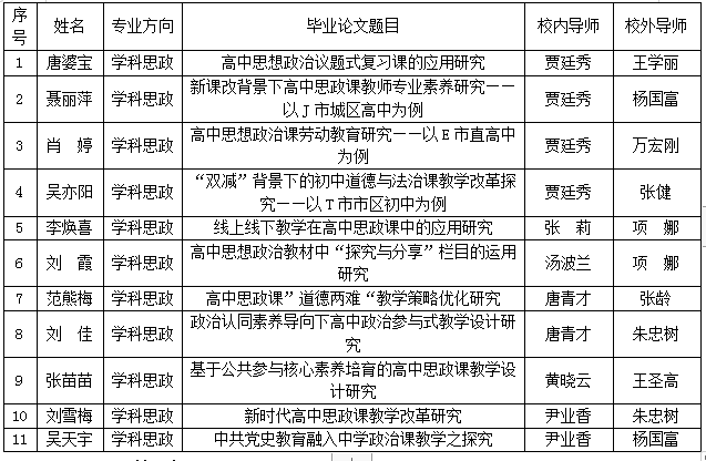 答辩研究生(序号即为答辩顺序,组长翟高):