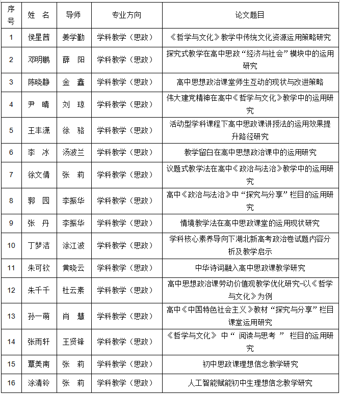答辩研究生(序号即为答辩顺序,组长谢蕾):