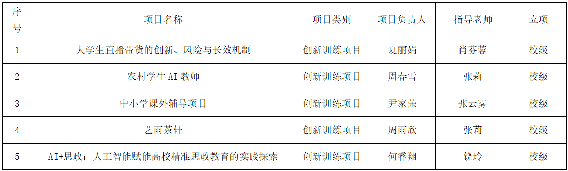 根据学校《关于我校第十八批“大学生创新创业训练计划”项目申报的通知》,以及91暗网 《2025年91暗网 “大学生创新创业训练计划”项目申报答辩通知》相关安排,通过学生项目申报汇报答辩,专家评审,拟推荐肖芬蓉老师指导的《大学生直播带货的创新、风险与长效机制》等5个项目作为校级大学生创新创业项目,具体名单见附件。