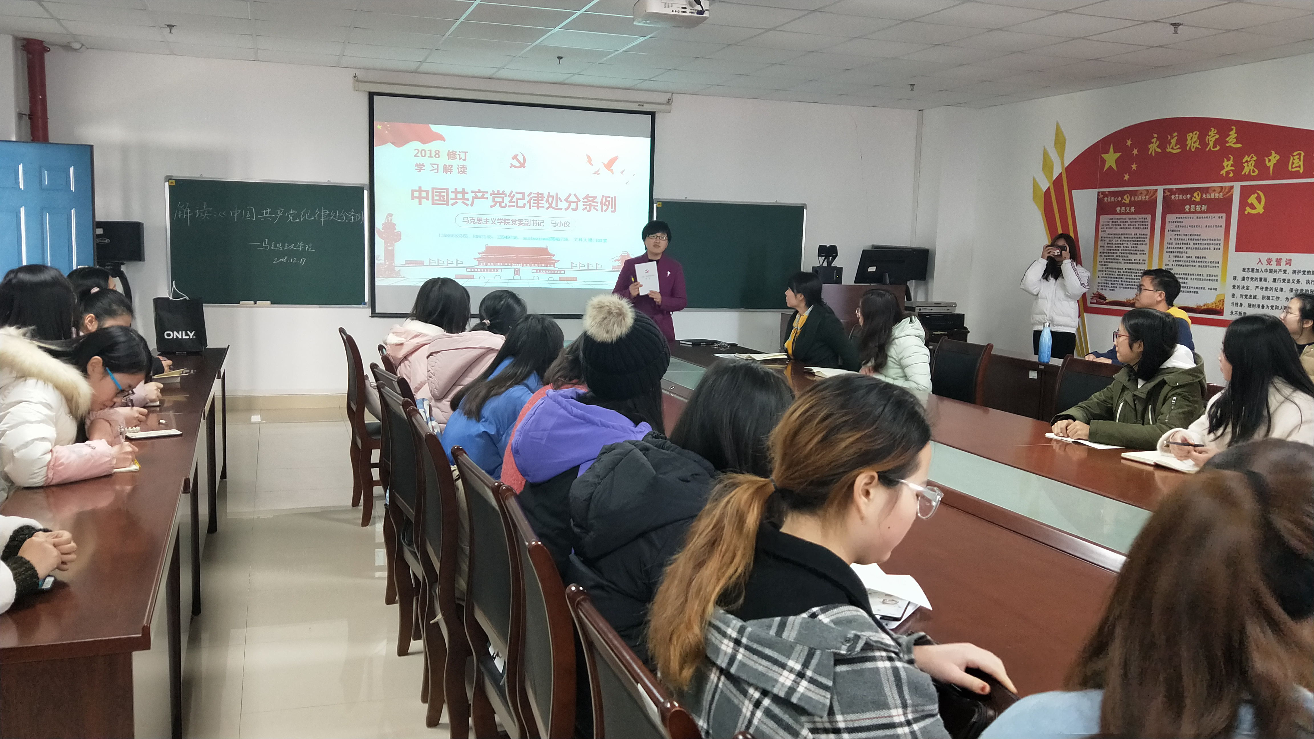 党委副书记马小佼为本科生全体党员、入党积极分子、学生干部讲了题为《学习解读中国共产党纪律处分条例》的主题党课,引导学生党员、入党积极分子、学生干部认真学习、深刻领会、准确把握《条例》精髓和实质。