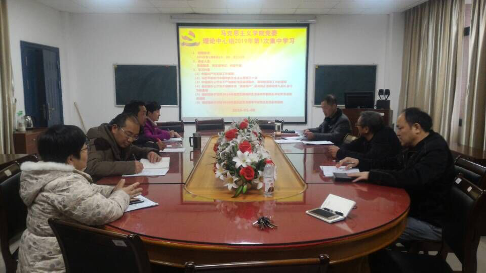 党委理论学习中心组在文科楼1125室组织了2019年首次集中学习。党委委员、各支部书记、科级以上干部参加了理论中心组学习,会议由党总支书记吴智勇主持。