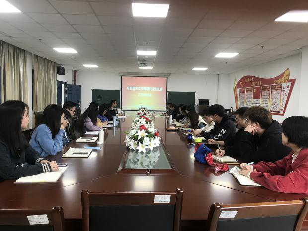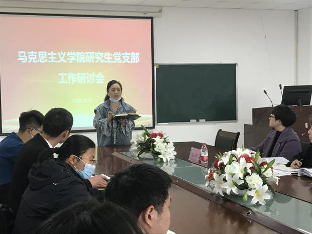 研究生党支部工作研讨会在文科大楼1102室召开,学院党委副书记马小佼、党建秘书张云雾和全体研究生党支部党员参加了研讨会。