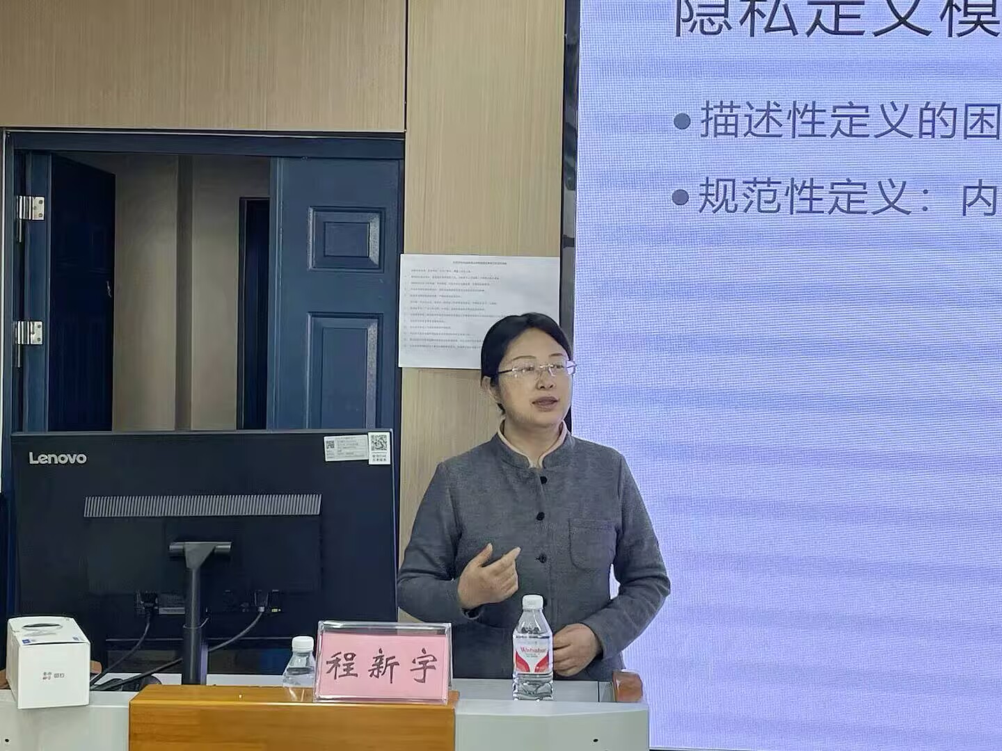 于4月2日下午文科楼1008室举办“思政教育五十年”系列学术讲座2025年第二讲。本次讲座由华中科技大学哲学学院教授、博士生导师、生命伦理学研究中心主任程新宇教授主讲,她以“人工智能时代的隐私保护”为题,为师生带来了一场深度学术讲座。讲座由副院长涂江波主持,学院研一、研二全体学生参与。