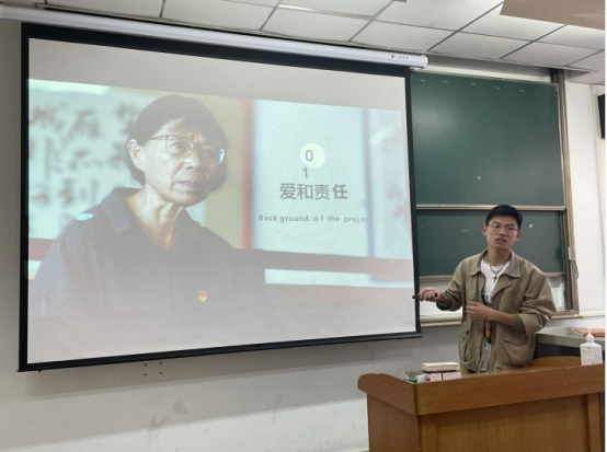 本堂课主要采用了学生自主分享模式,由思政12101班的魏宇豪,思政12102班的吴佳庆、李岱松三位同学为在座师生带来了精彩分享。魏宇豪的《论一个辅导员的自我修养》着重强调了作为老师的“爱与责任”,引起同学共鸣,吴佳庆的《辅导员养成攻略》主要从教师能力方面发表了自己的看法,李岱松的《假如我是一名辅导员》则较为全面地介绍了辅导员的日常工作。