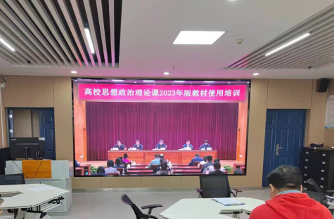 在文科楼1008设立了培训分会场,组织全体思政课教师参加培训。