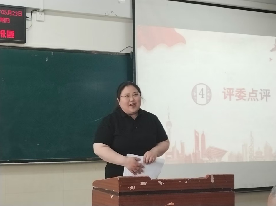 教学展示环节结束后,孙萌老师分别对每一位选手进行了精彩的点评,总体上对选手们的表现予以肯定,同时也指出了一些不足,例如手部动作较多,心理素质有待进一步提高,思维导图需要更详细来帮助学生构建知识框架等,并分享给在场同学三句话:以“问渠哪得清如许,为有源头活水来”期望选手作为未来的思政课教师要有深刻的政治情怀,坚定理想信念,锤炼高尚品质,从“源头”和“活水”之中感悟新时代蓬勃发展的活力,将爱国情、强国志、报国行融入教育实践;以“嘈嘈切切错杂弹,大珠小珠落玉盘”对选手的即兴演讲和模拟授课进行方式、方法上的指导;以“纸上得来终觉浅,绝知此事要躬行”鼓励选手在今后的实践中多加练习,进入职场更是要通过不断地打磨来上好思政课,期望选手在师范生道路上更好的摸索,不断提高自身素养,共同努力成为习近平总书记所说的“有理想信念、有道德情操、有仁爱之心、有扎实学识”的好老师!