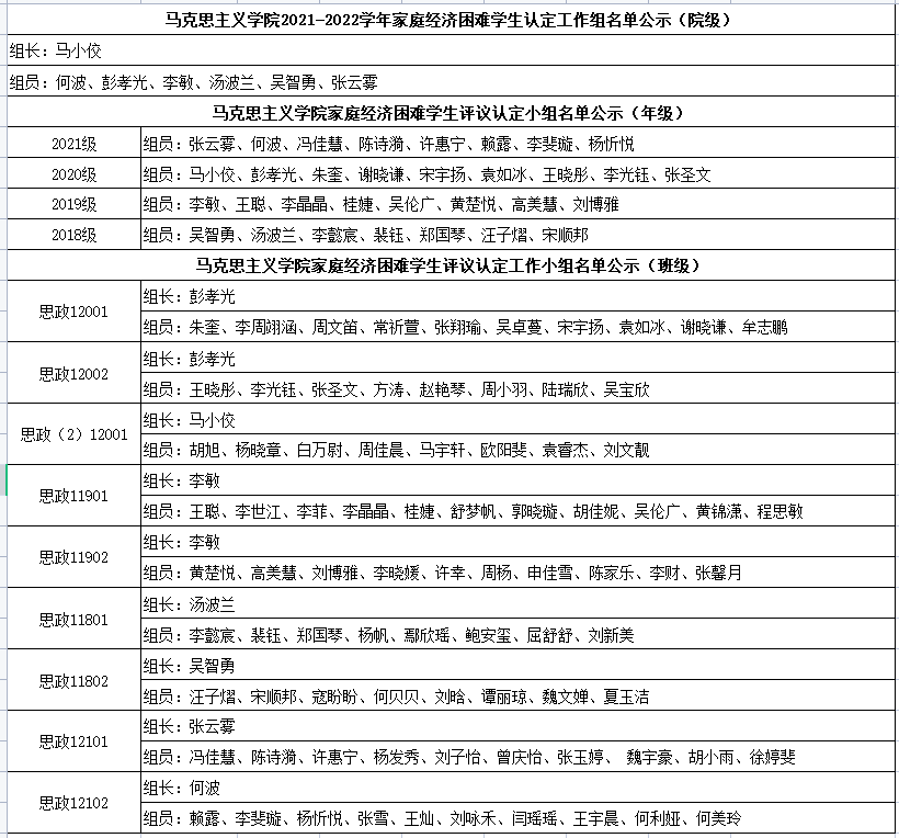 根据91暗网 学生工作处《关于做好2021-2022学年家庭经济困难学生认定工作的通知》,结合学院实际,现将91暗网 2021-2022学年家庭经济困难学生认定评议工作组成员名单公示如下: