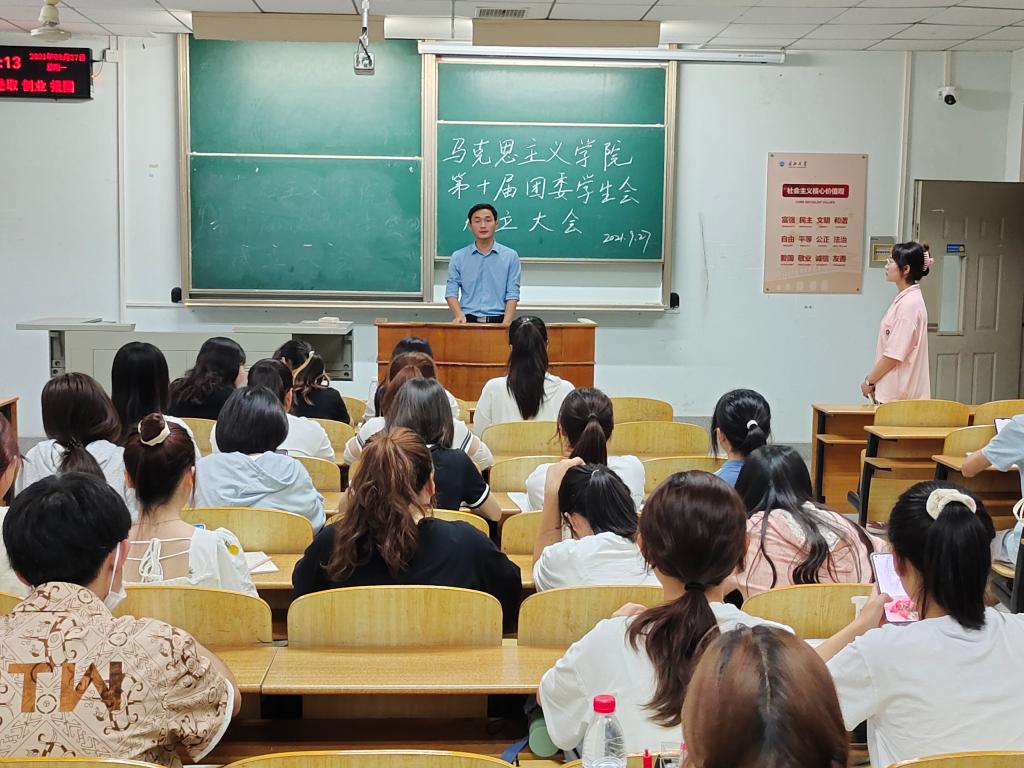 第十届团委学生会今天正式成立!” 9月27日晚6时,学院在13教举行了第十届团委学生会成立大会,辅导员李敏和全体团委学生会成员参会。
