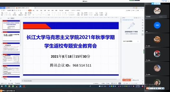 召集各班班长、团支书通过腾讯会议召开了秋季返校报到安全教育专题会议,对新学期开学和疫情防控等安全工作进行部署。