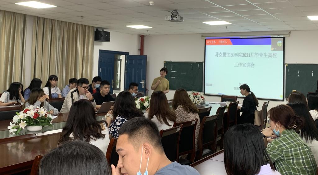 于5月28日召开2021届毕业生毕业、就业工作会议。学院党委副书记马小佼、学工班主任张云雾、就业专干李敏和全体本研毕业生参加会议。