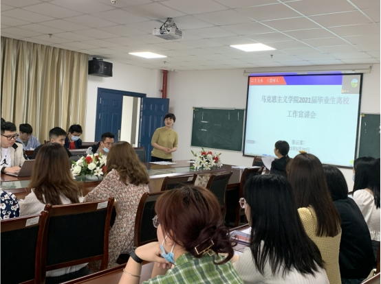 于2021年5月28日在文科楼1104室组织开展了2021毕业生离校工作会,专题宣讲了诚信还款、诚信就业的相关工作。学院党委副书记马小佼、辅导员张云雾以及全院本、研毕业生参加了本次会议。