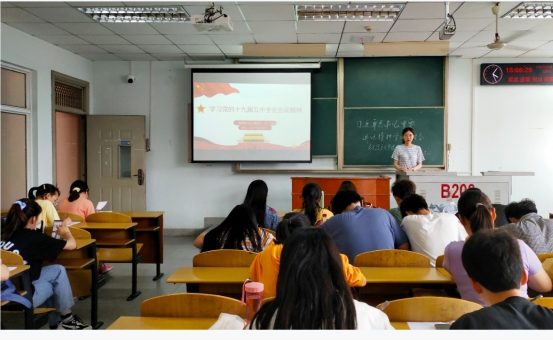 学习小组成员对党的十九届五中全会内容进行大致的学习,使得学习小组成员能够对十九届五中全会的内容有个大致把握,进而对其有更为深刻的理解。结合时代背景,学习小组成员一起讨论了为实现中华民族伟大复兴,把中国建设成现代化强国所坚持的奋斗目标和发展方向对当代中国有着怎样重大意义,同时作为祖国未来的建设者,如今我们怎样从自身做起,为祖国贡献力量等一系列问题。