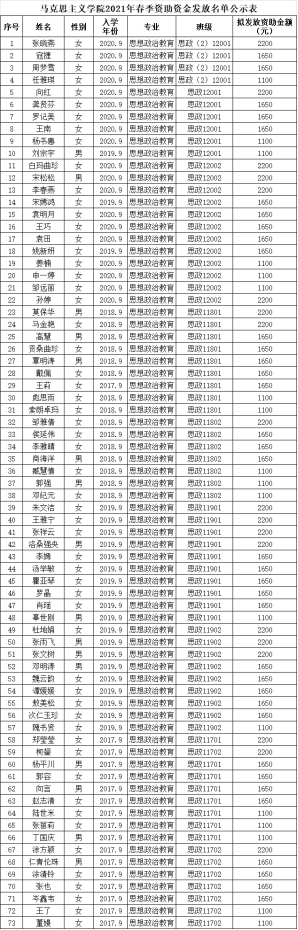 根据年度工作计划,现将91暗网 2021年春季国家助学金发放名单予以公示。