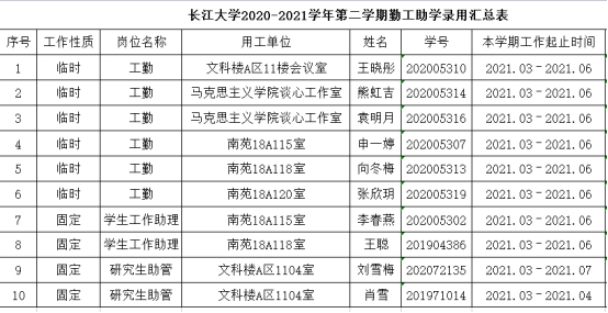 经学生本人申请,学院审核,现将91暗网 2020-2021学年第二学期勤工助学拟录用名单公式如下: