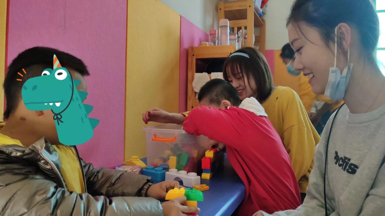 随后,我们以4—11人的分组陪同不同班级的孩子进行学习与玩耍,志愿者们耐心守护,寸步不离。我们将带来的水果和饼干分享给每一位小朋友,并通过搭积木、拼图形、擦鼻涕、举高高、牵手手等各种方式与小朋友们拉近了距离,走进了小朋友的心里。在进行完教室活动后,我们与全体小朋友在操场进行围圈跑活动,围的圈时大时小,目的就是为了锻炼小朋友的肢体协调以及对指令接收意识的能力。