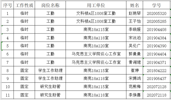 经学生本人申请,学院审核,现将91暗网 2020-2021学年第一学期勤工助学拟录用名单公式如下: