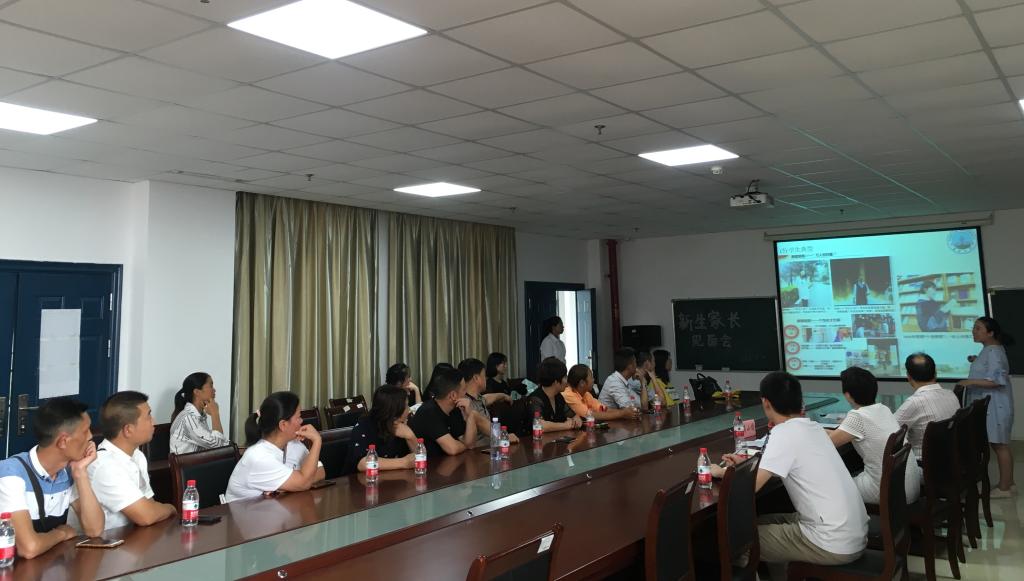 院长姜学勤,党委副书记马小佼,学工办主任张云雾,辅导员李敏,兼职辅导员董思遥以及部分新生家长参加会议。