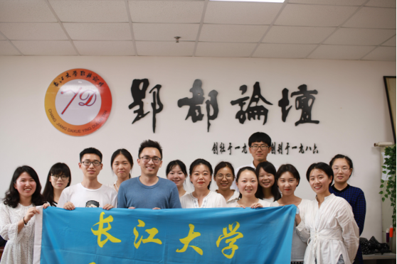 (通讯员 景翰文)炎炎酷暑天,浓浓社友情。2019年6月20日下午3点,美国休斯顿大学心理学硕士、蒙特梭利国际预科文凭项目高中教师,《郢都论坛》社往届优秀社友周守龙先生回访母校,参加了在文科大楼1006室举行的社团座谈交流会,《郢都论坛》社第31届社长方令,主编蒋蔚然,第32届社长周娜,主编路雪莲以及第33届部分社员参加了本次活动。