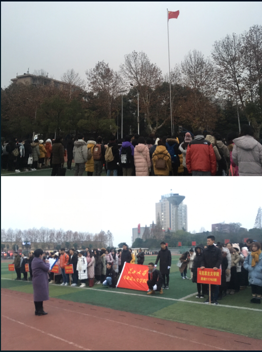 于12月10日早上7点在东校区田径场举行了升国旗仪式。学院分党委书记吴智勇、副书记马小佼,辅导员张云雾、兼职辅导员饶静以及全院本科生、在校研究生参加了本次升旗仪式,仪式由院学生会主席龚道荣主持。