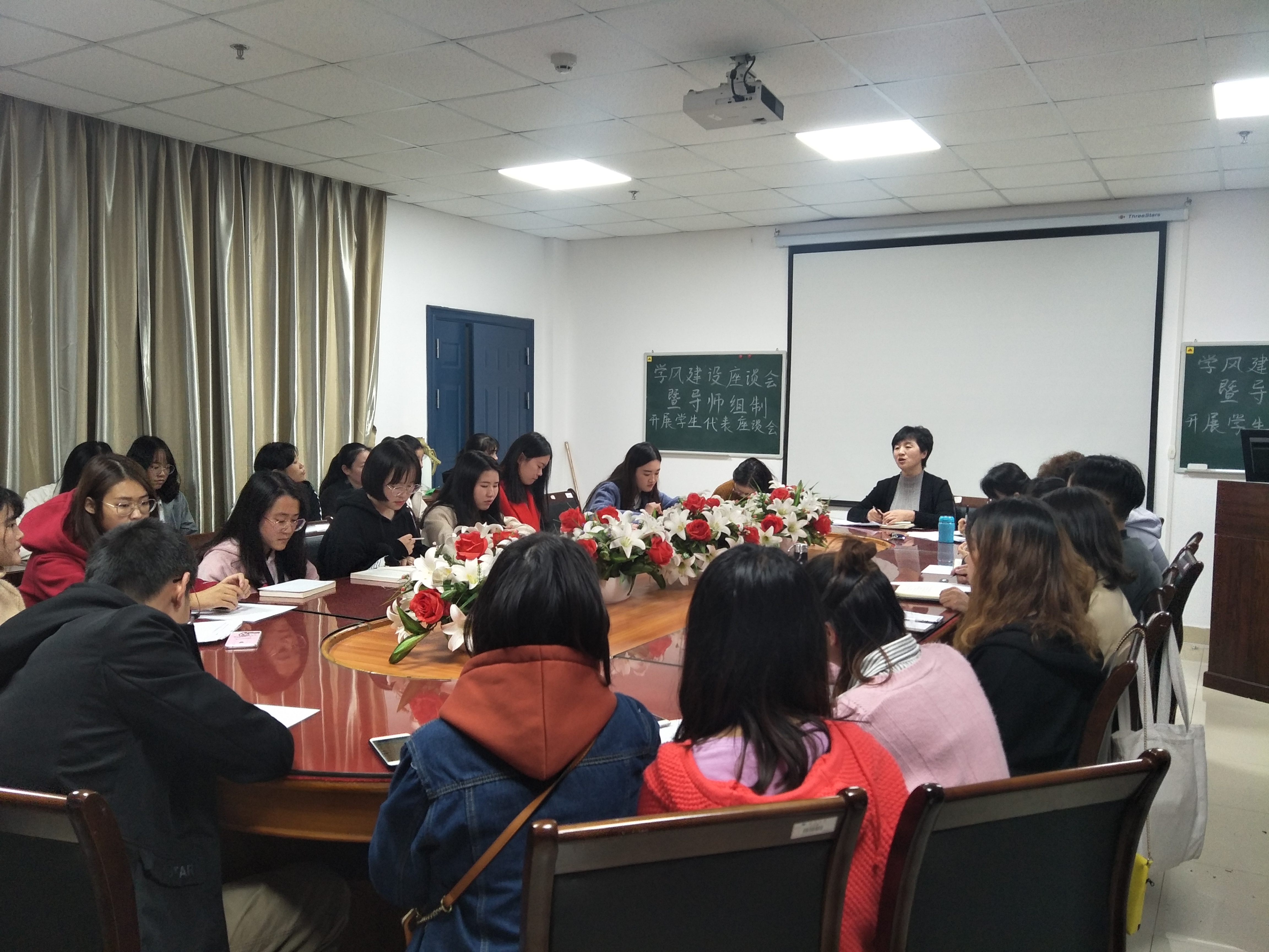 于2018年11月5日下午3:50在文科大楼1125会议室召开学风建设座谈会暨导师组制开展座谈会。本次座谈会有由马院的党委副书记马小佼老师主持,参会学生谈论了参与本科生导师组制的个人体会,也对导师组制提出了几点希望,例如:多开展组内活动(如读书分享以及学习打卡等);利用写信来与导师拉进距离;由学生自主选择导师。随后,学院根据老师和学生的具体情况进行了2018级新生导师组分组安排并于11月15日下午举行了2018级本科生导师聘任仪式,由王院长亲自为各位导师颁发聘书并合影留恋。聘任仪式的完成标志着马院2018级新生导师正式上任。最后,由新生辅导员张云雾老师于11月18日晚7点主教207面向全院新生召开了2018级新生导师组制动员大会,正式向大家介绍了所属导师同时为大家提出了相应的要求。