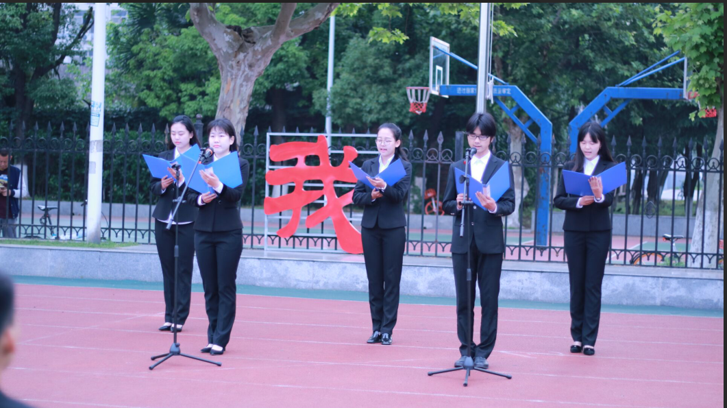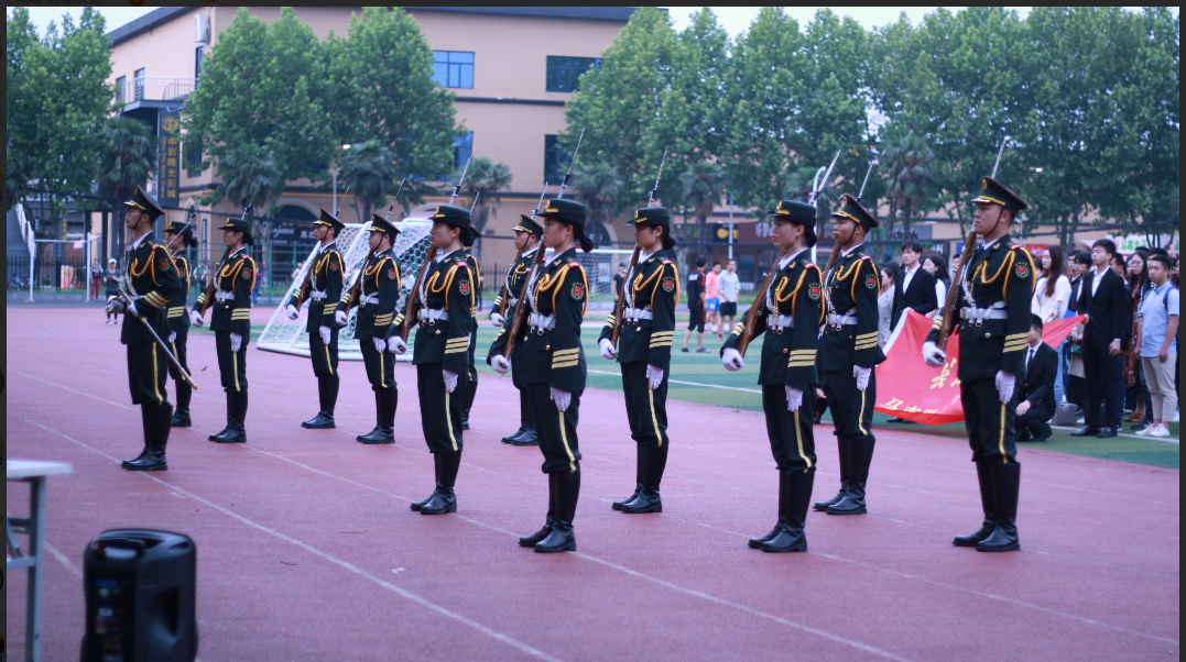 七点整,升旗仪式正式开始。在国旗护卫队的组织下,迎国旗、升国旗、奏国歌,全体师生行注目礼,仪式肃穆而庄重。