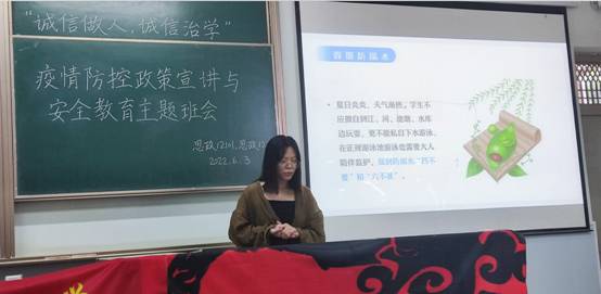 思政11901、思政11902班则重点学习了疫情防控政策和要求,通报了其他高校学生违反疫情防控政策的严重后果,班主任李敏老师提醒同学们要遵守疫情防控的个人责任,服从管控要求和核酸检测抽检工作,配合做好防控工作。