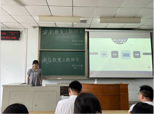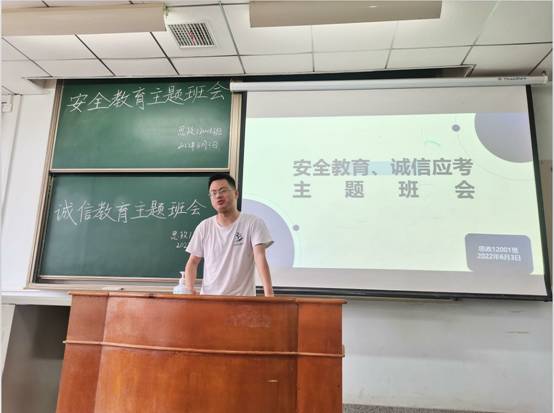 思政12001、思政12002班以学习研讨的方式开展了诚信考试考风考纪教育。辅导员李敏老师、班主任彭孝光老师通报了学生违反考试规定的典型案例,警示同学们诚信应考、诚信做人。