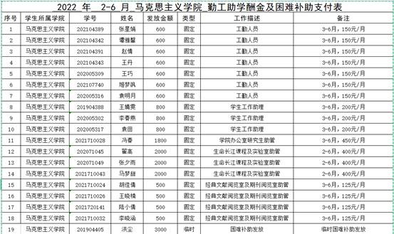 因工作需要和家庭经济困难情况,经学生本人申请,学院审核,现将91暗网 2021-2022学年第二学期勤工助学酬金及困难补助发放情况公示如下: