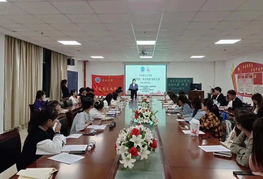 于文科楼1104室举办“才聚荆楚,勇往职前”模拟求职大赛决赛。经过初赛无领导小组讨论12进6选拔,赵金铭、何利娅、张玉婷、孟颖佳、齐晓杭、魏宇豪六位同学进入决赛,角逐最终的胜者。决赛以半结构化面试的形式选拔。学院党委副书记马小佼、法学院就业专干盛文军、学院辅导员李敏任评委。
